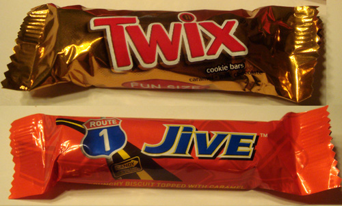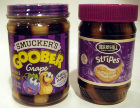 Stripes peanut butter was much darker looking but had the same plasticy feel. I felt it did have a little more peanut flavor but Ethan detected some bitterness too.